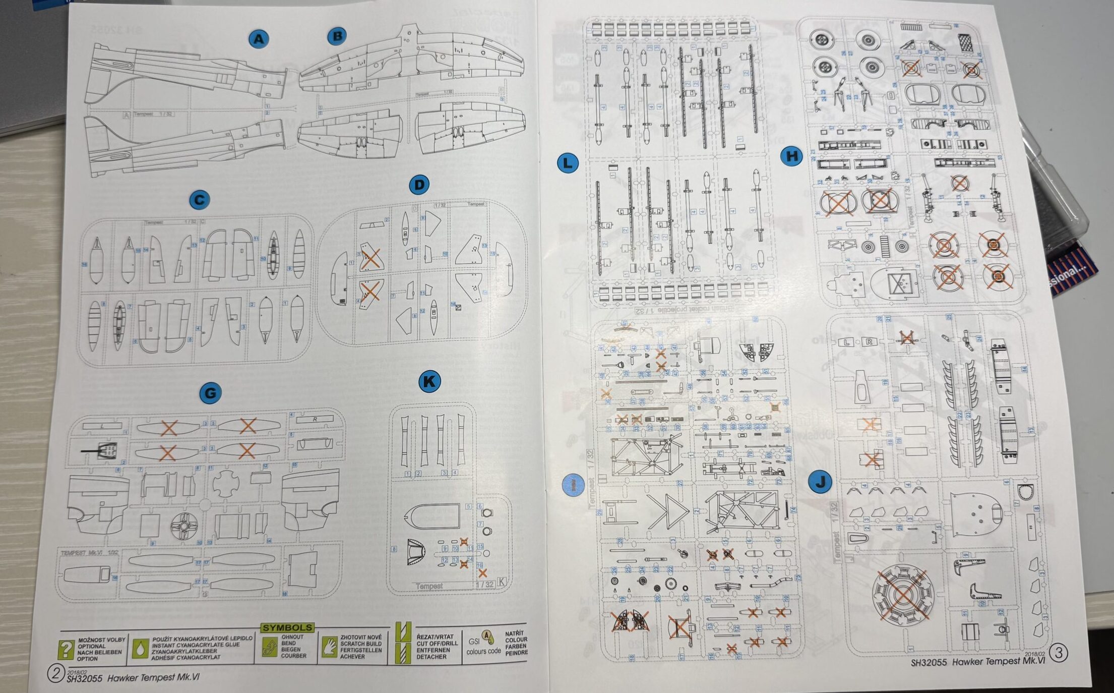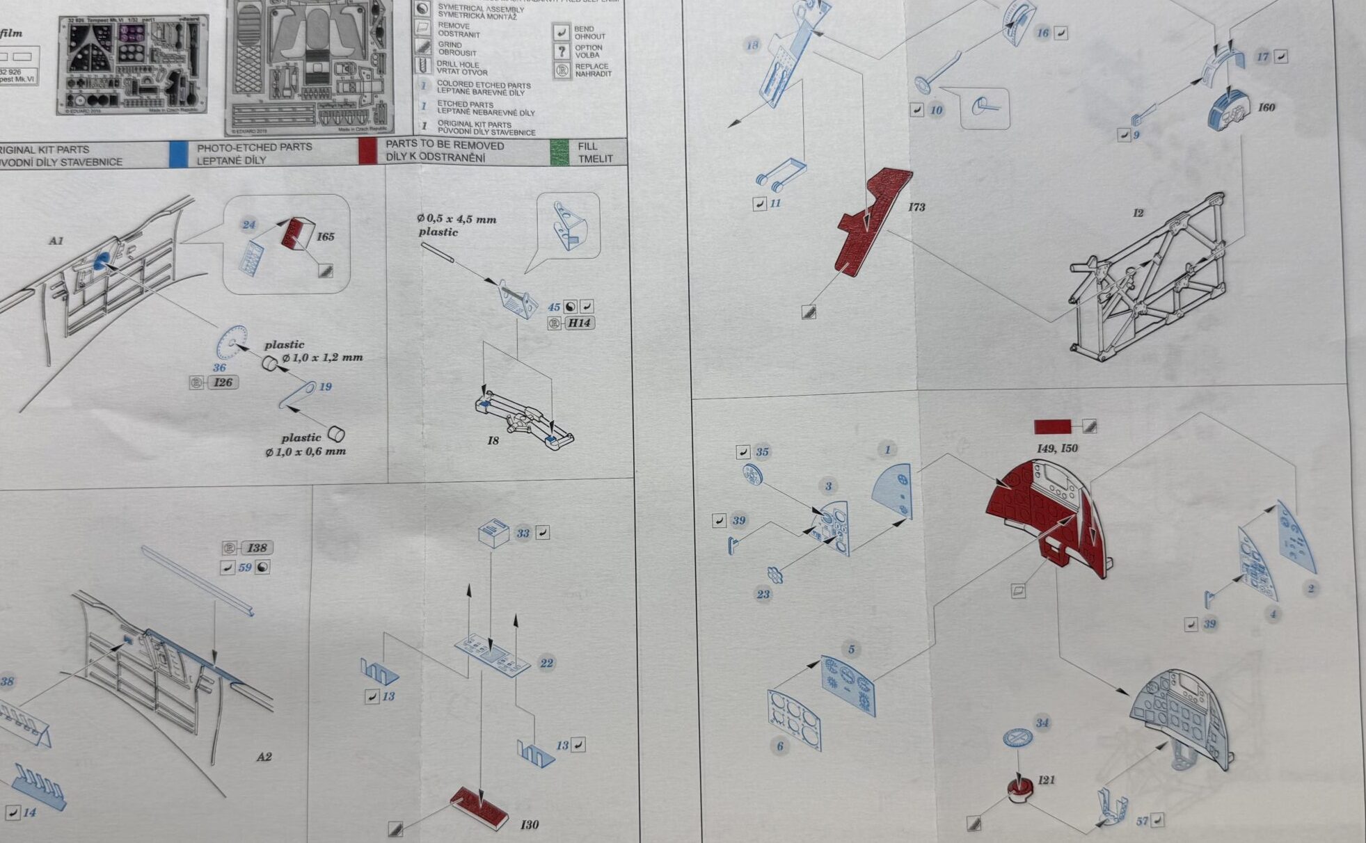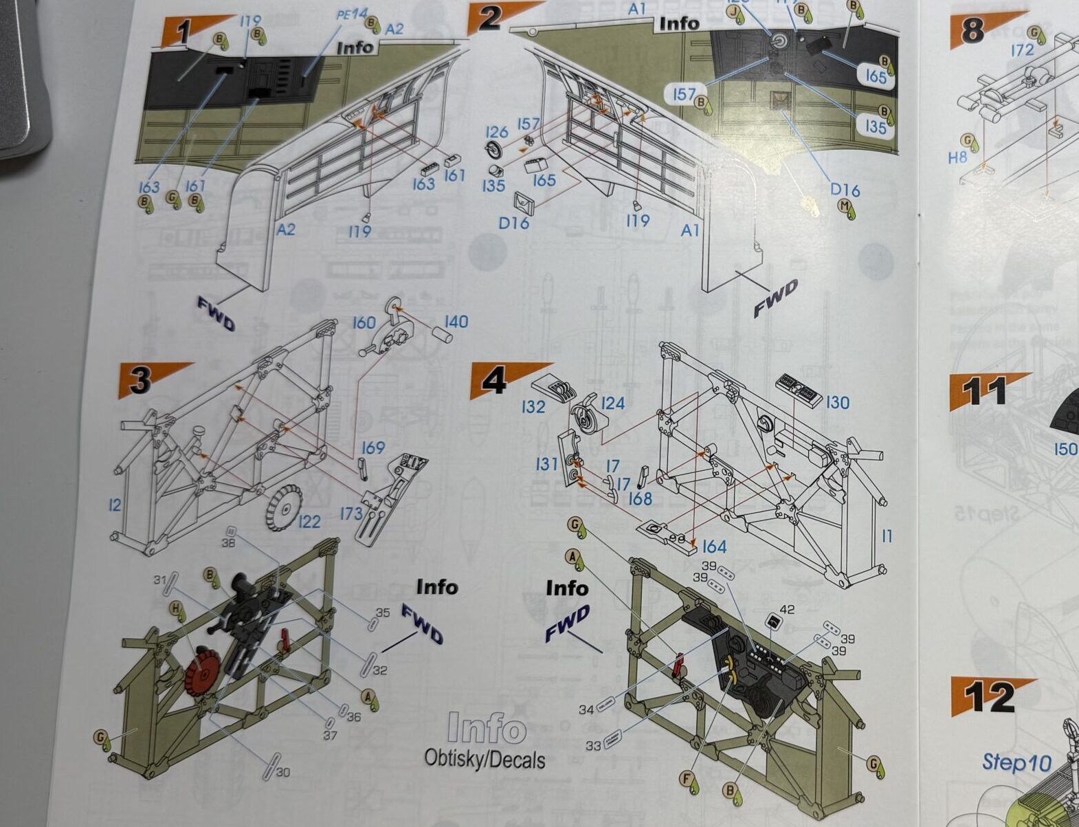 インストのパーツ一覧です。エンジンが無いので、パーツ数は一般的な1/48と同程度です。ここは少しホッとします。(;^ω^)