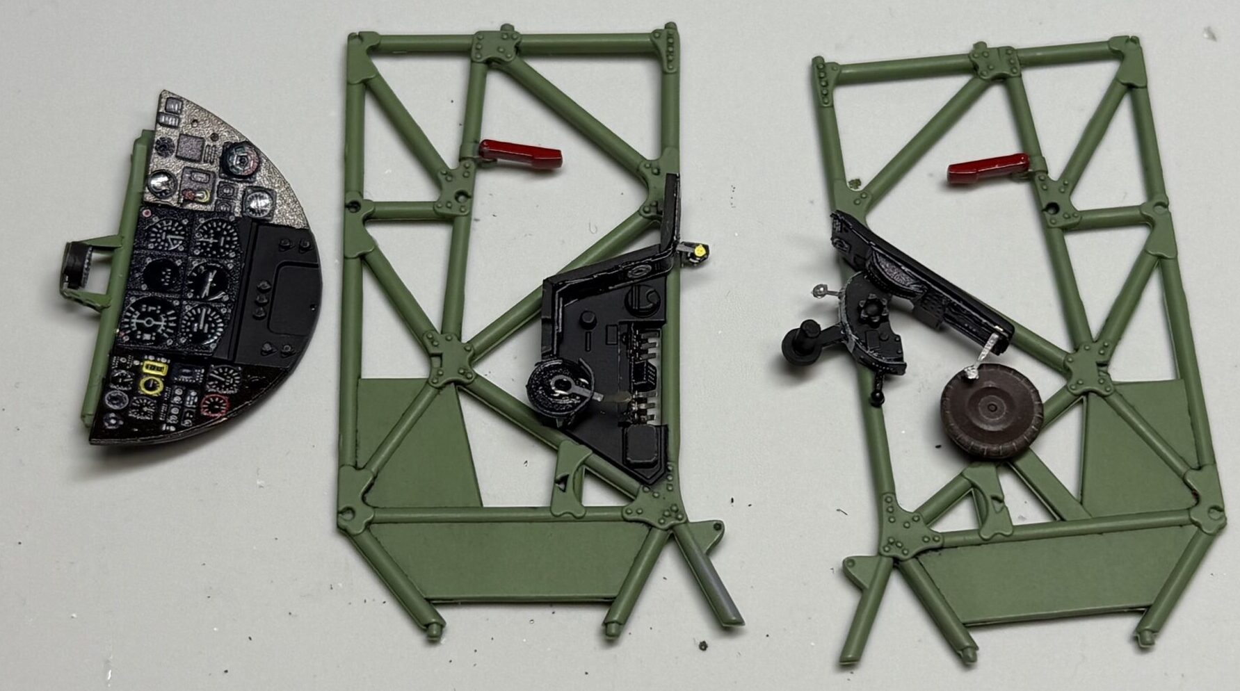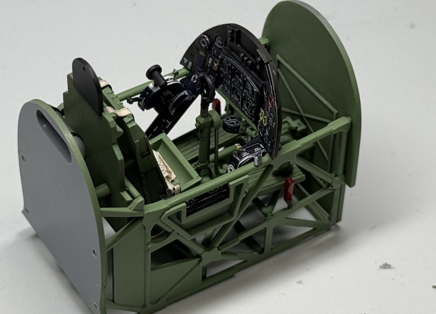 フロアーと操縦桿周りの部分です。スピットと同じような構成ですね。(゚д゚)! フットペダルはエッチングに換装しております。