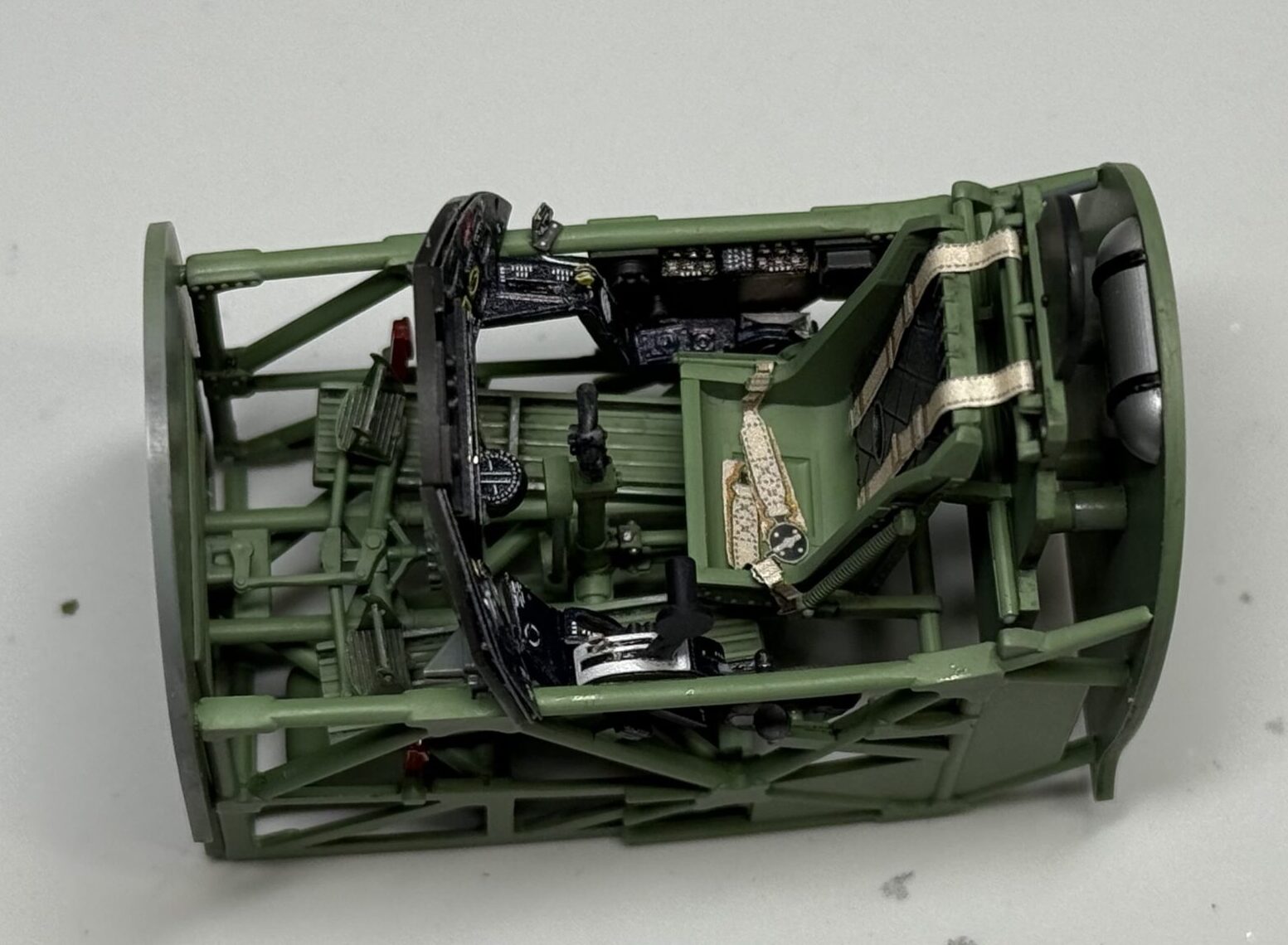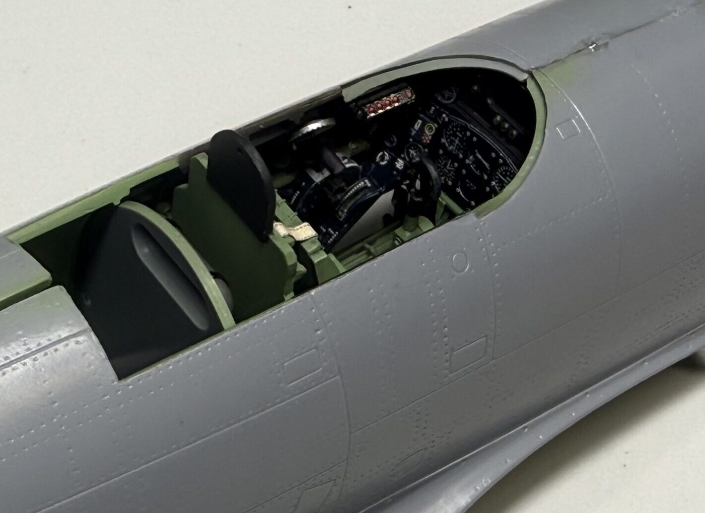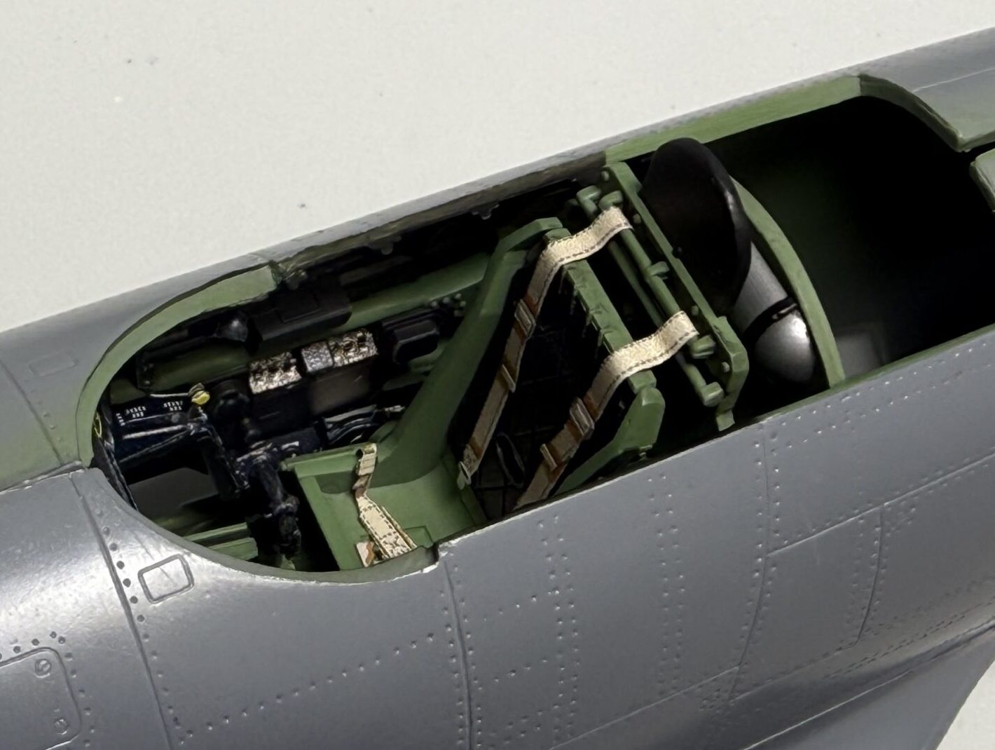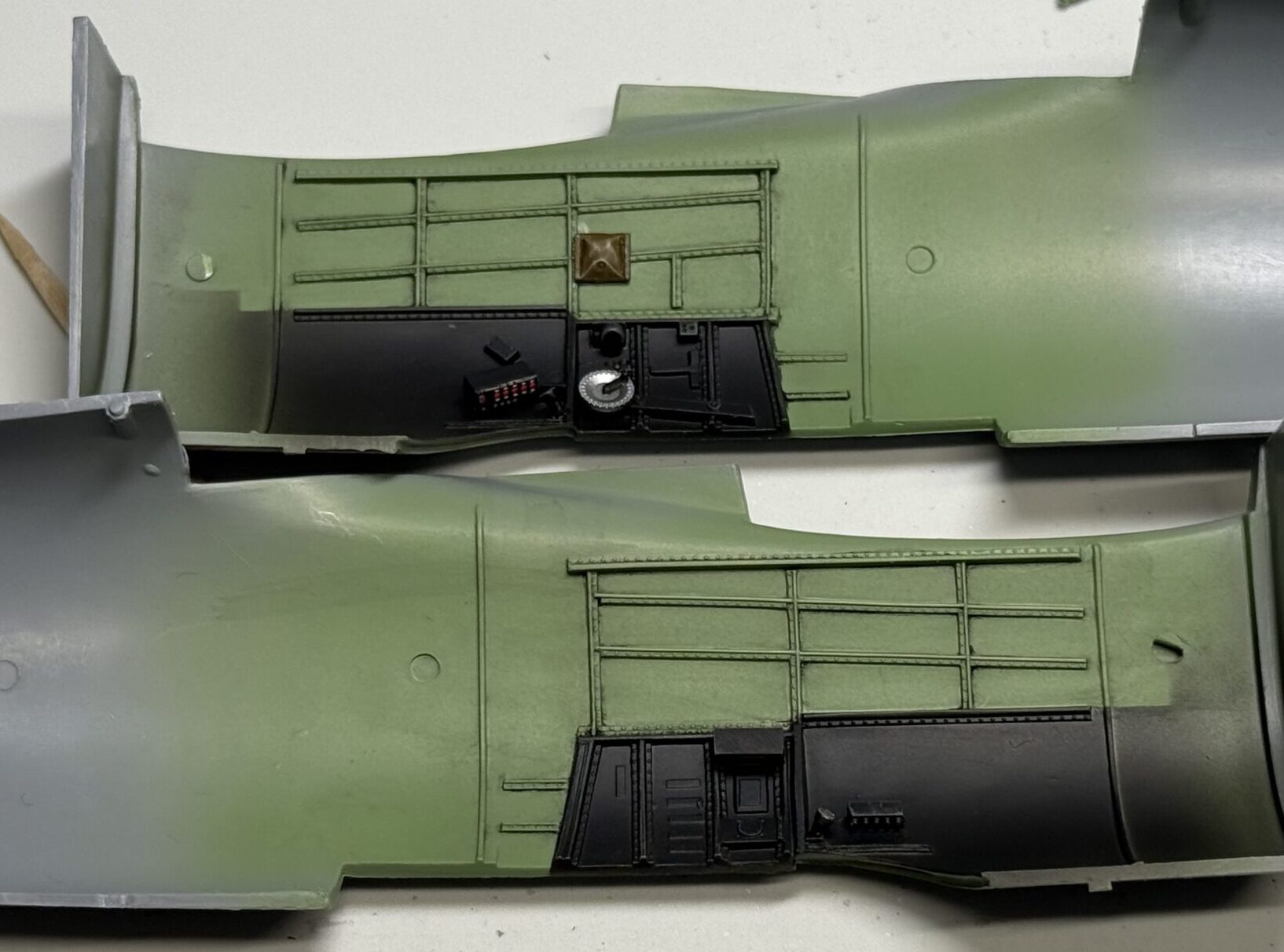 胴体内側は黒とグリーンの2色仕上げの様です。コクピット上部の側壁は防眩処理なのでしょうか、黒で塗装されています。